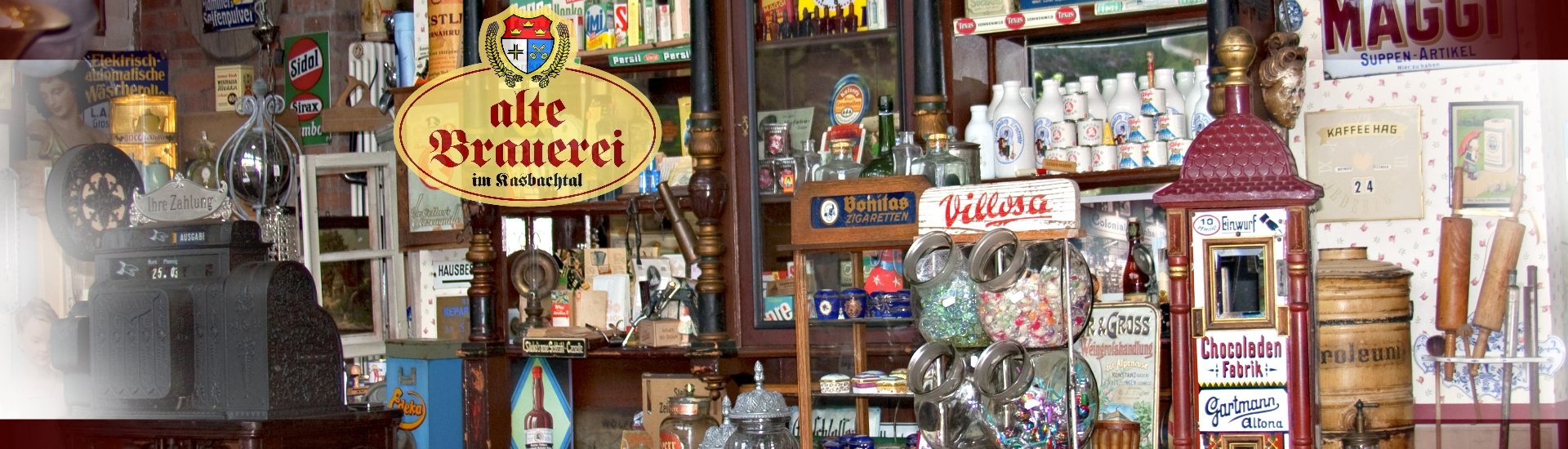 Erleben Sie eine unvergessliche Feier im besonderen Ambiente der „Alten Brauerei“! Entdecken Sie Deutschlands größte öffentlich zugängliche Sammlung von Emailschildern, bestaunen Sie historische Traktoren, einen englischen Oldtimer-Bus, einen DKW aus dem Jahr 1937 und schlendern Sie durch unseren nostalgischen Museumsladen, der einem Tante-Emma-Laden aus der Zeit von 1900 bis 1940 nachempfunden ist.